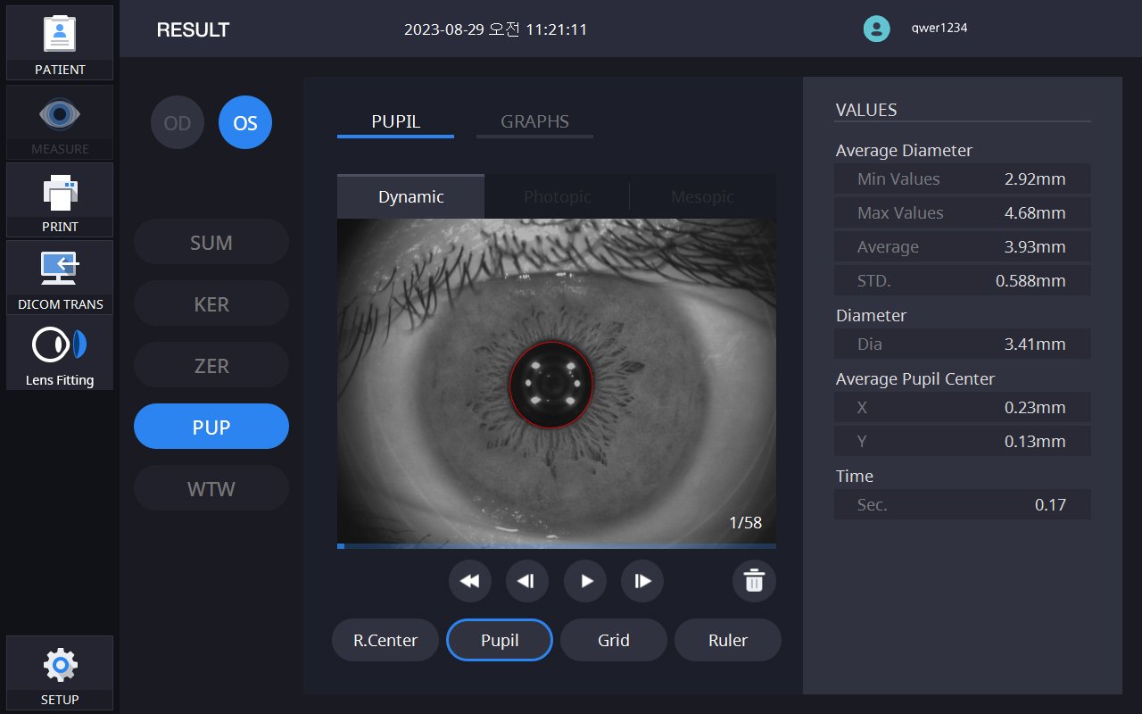 · White-to-White: Automatische Messung des Hornhautdurchmessers zur Linsenauswahl und Kontaktlinsenanpassung.