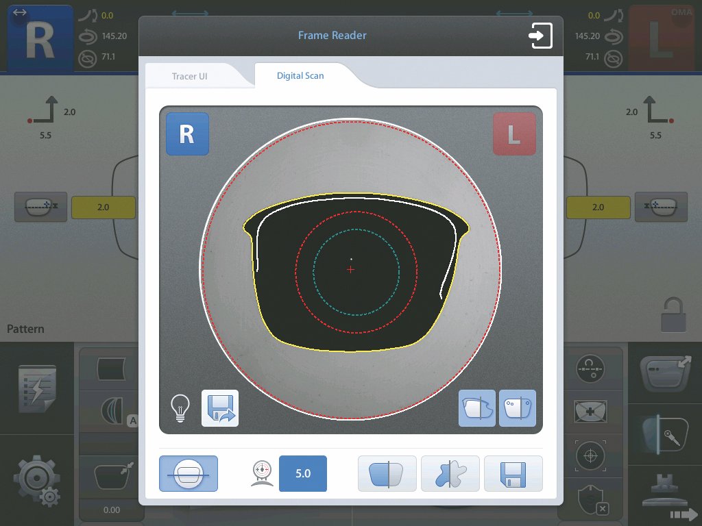 - Automatisches Erkennen von Fassung, Muster- oder Formscheibe im Tracer
