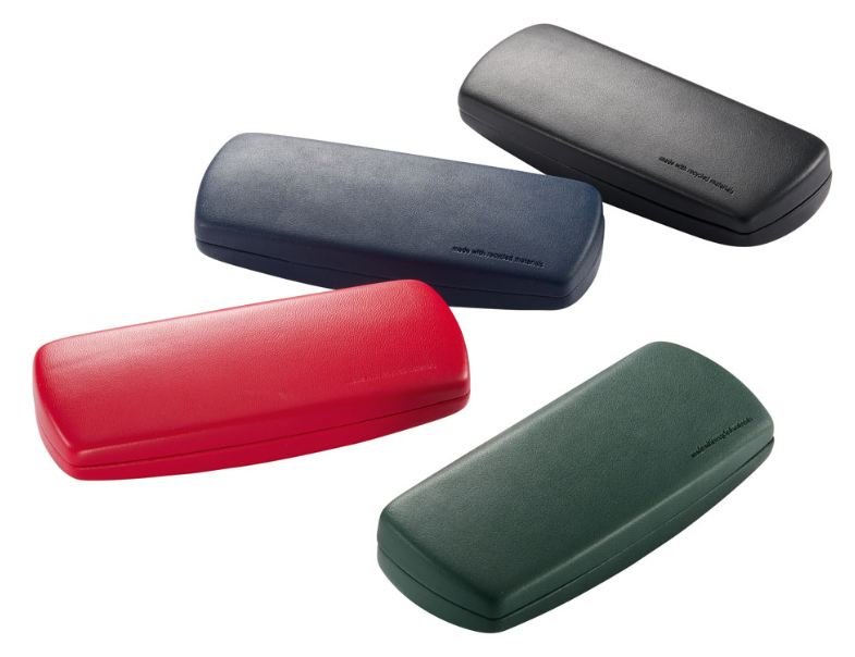 Metalletui mit Scharnier, Bezug aus recyceltem Kunststoff, schwarzes Innenfutter