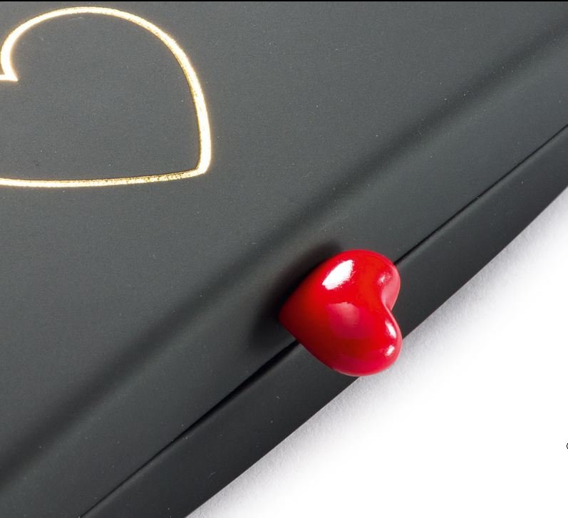 Metalletui mit Scharnier, mit geprägtem Herzmotiv, mit verschraubter Herzapplikation, schwarzes... mehr