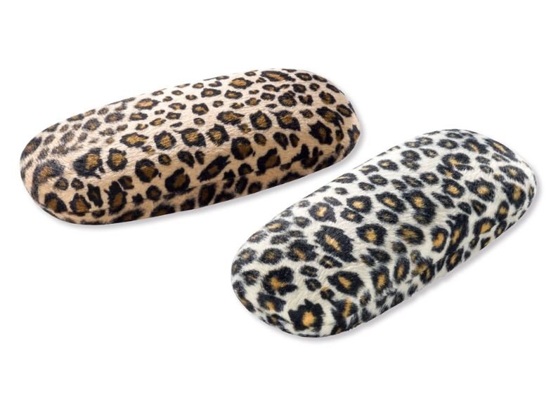 Metalletui mit Scharnier, Textilbezug im Leopardenmuster, schwarzes Innenfutter, in 2 Farben sortiert