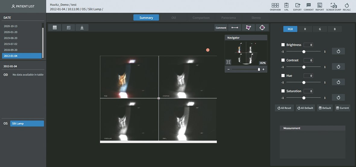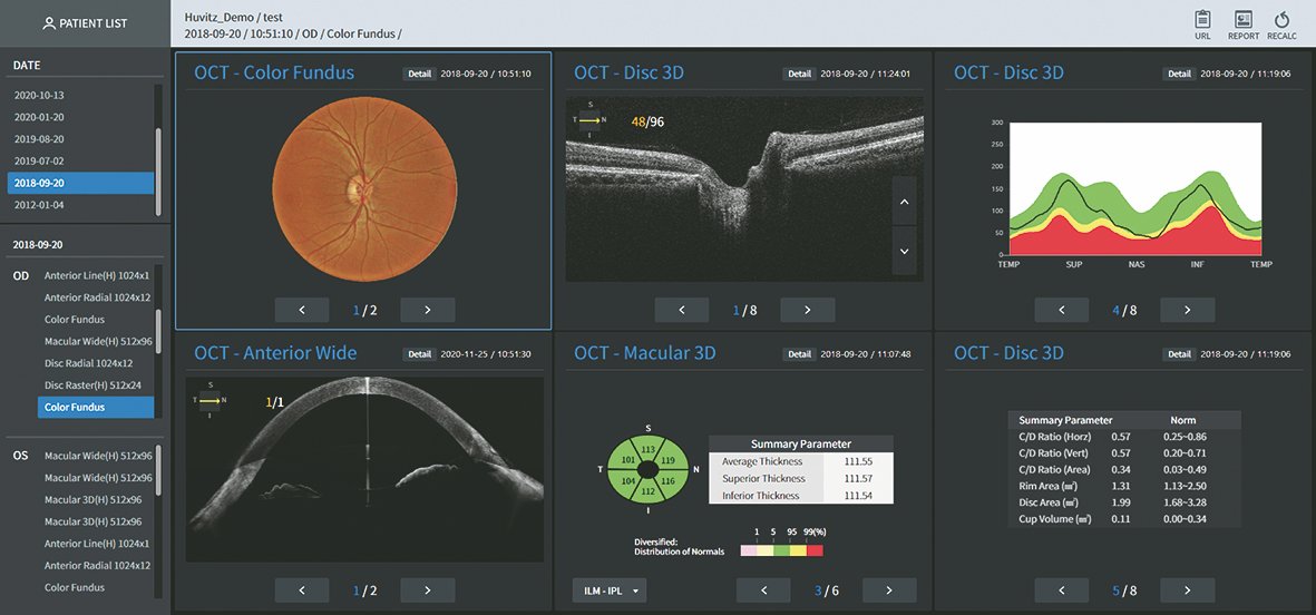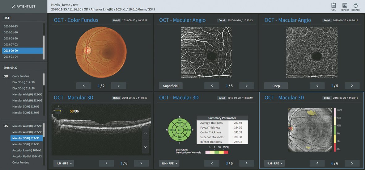 Dank der umfassenden Kompatibilität zu nahezu allen aktuellen Huvitz-Geräten können sämtliche Ergebnisse schnell, zuverlässig und strukturiert aufgerufen werden. Die HIIS-1 Software stellt für verschiedene Auffälligkeiten optimierte Analyseansichten bereit und ermöglicht so eine präzise Auswertung, eine übersichtliche Befunddarstellung und eine effiziente Verlaufskontrolle.
