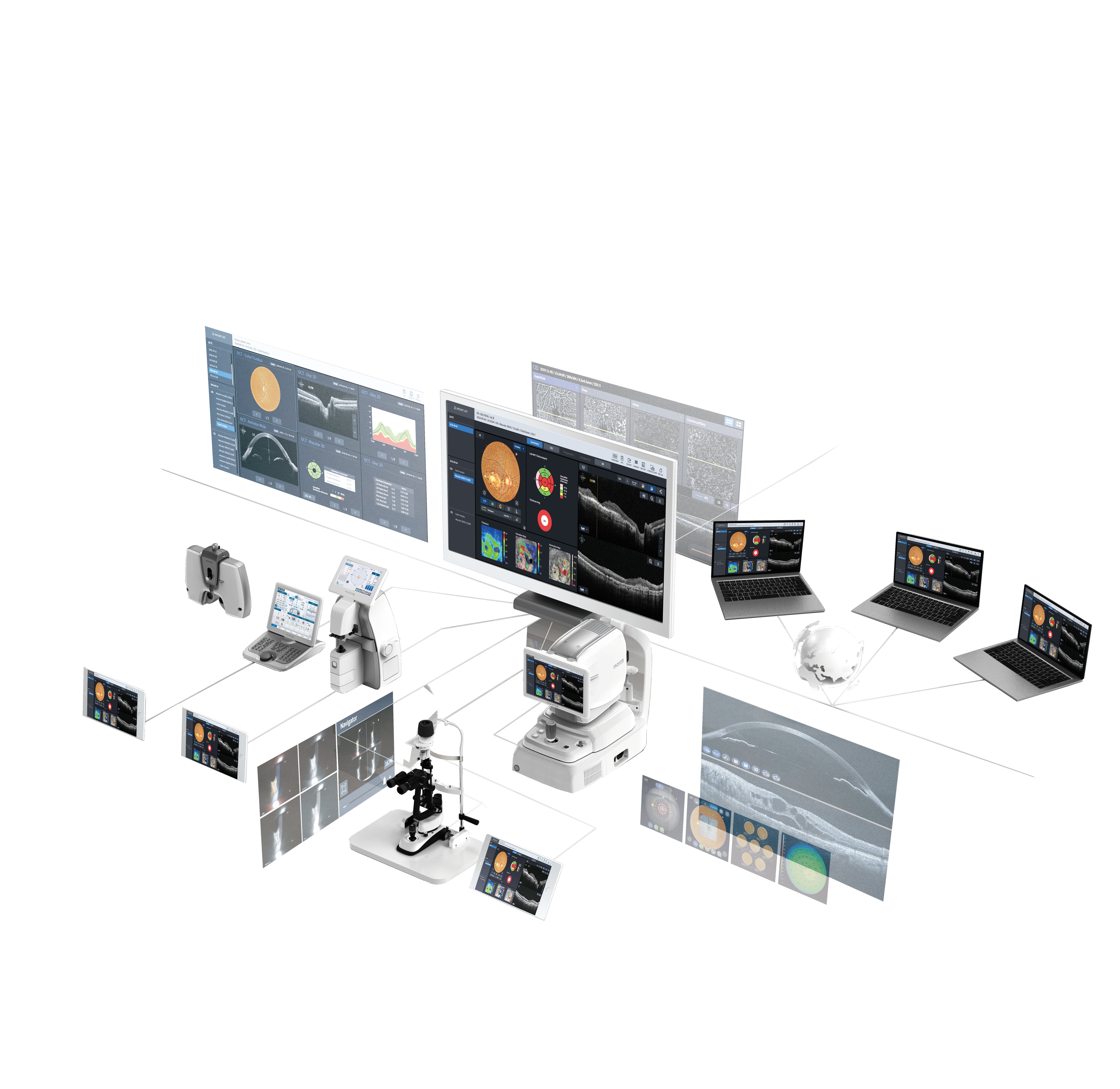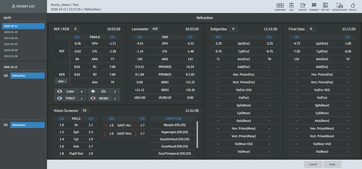 Der HIIS-1 ist die zentrale Datenplattform für alle Huvitz-Geräte und bietet ein leistungsstarkes, webbasiertes Managementsystem für Optiker, Kliniken und Praxen. Alle Screeningdaten – von OCT über Fundusaufnahmen bis hin zu Refraktion, Topographie, Spaltlampenbildern oder Vision Screening – werden automatisch in einer einzigen Software zusammengeführt und Kundenbezogen organisiert.