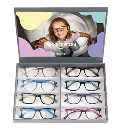 Wähle gemeinsam mit deinem Kunden eine Fassung und DAO-Brillengläser aus.